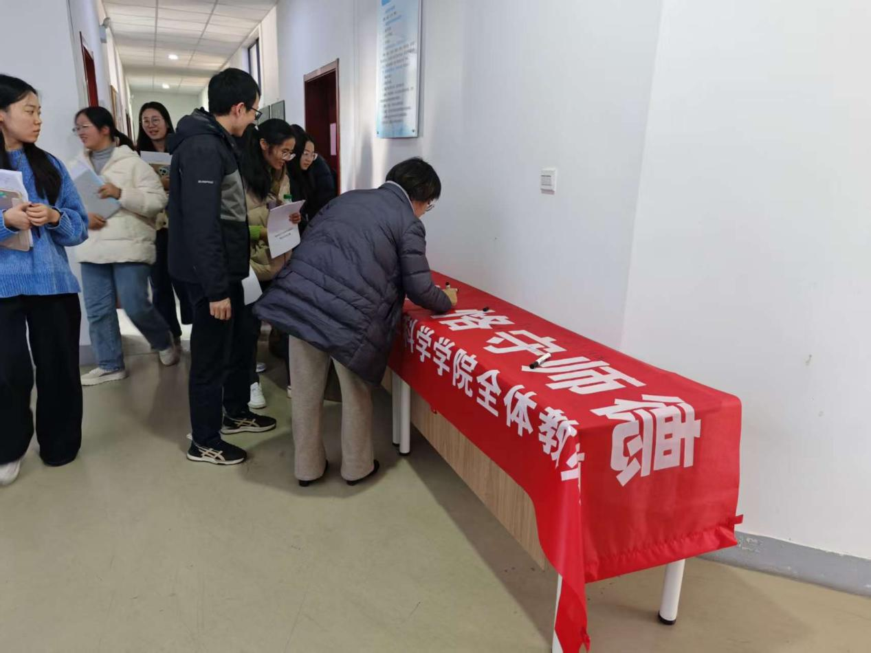 廉洁从教承诺书》,并在“我承诺:廉洁从教,恪守师德”主题横幅上签名,表达坚守师德、廉洁育人的信心与决心。