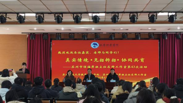 专题讲座环节,须海萍老师结合一线经验,围绕班主任沟通原则、技巧等内容,通过案例剖析带来兼具理论与实践价值的分享。实战研讨环节,工作室老师模拟师生矛盾、同学摩擦等真实场景,师范生化身“班主任”登台处置,点评老师从问题定位、沟通适配性等维度细致指导,传授实战技巧,践行“实战赋能、协同共育”初衷。